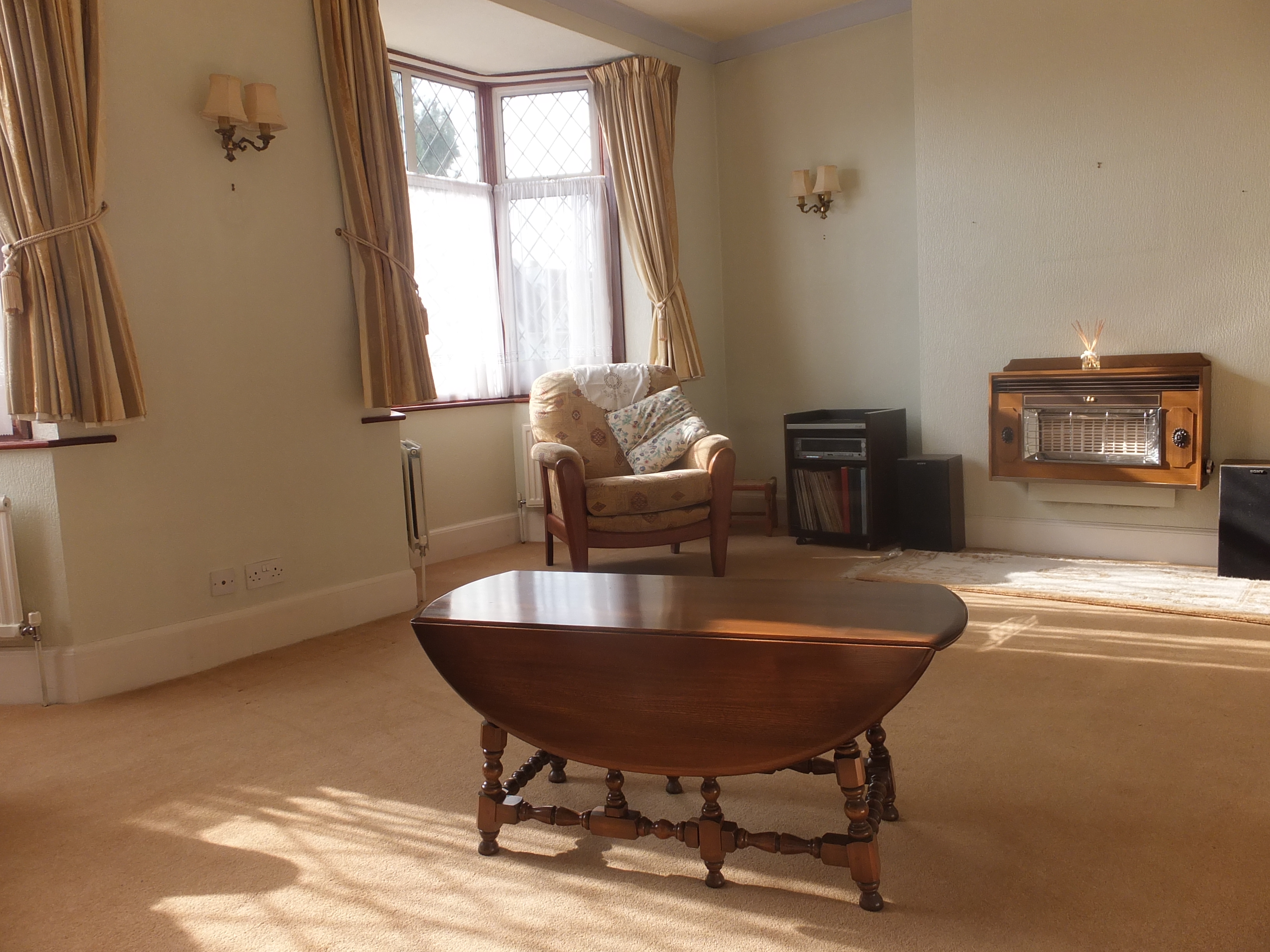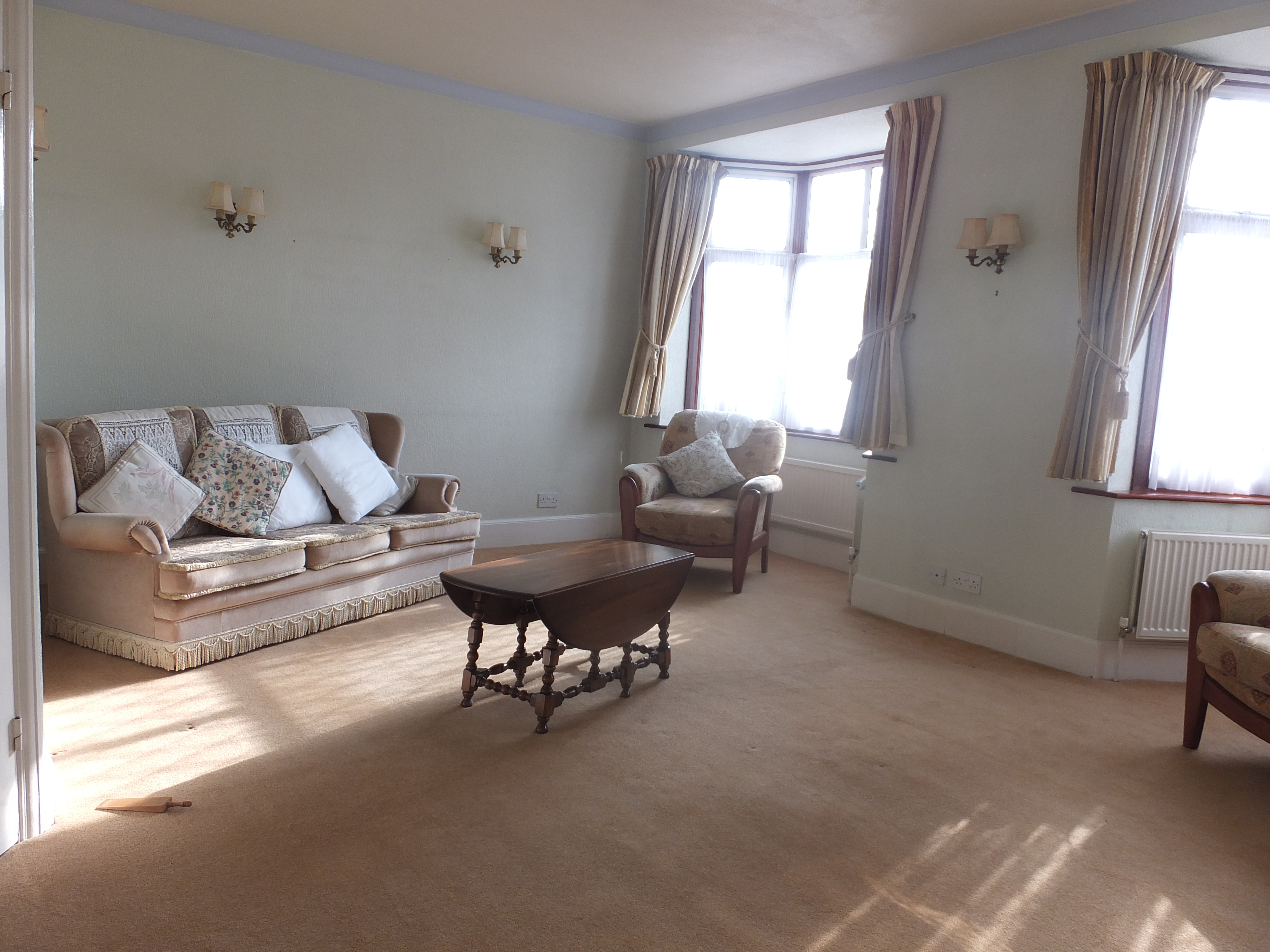 This is a lovely bright double size reception room with high ceilings,there are two double glazed bay windows to the front aspect, the room has ample heating with a bay single radiator under one and three single flat radiators under the other. Wall to wall carpets ample power points and wall mounted gas fire.