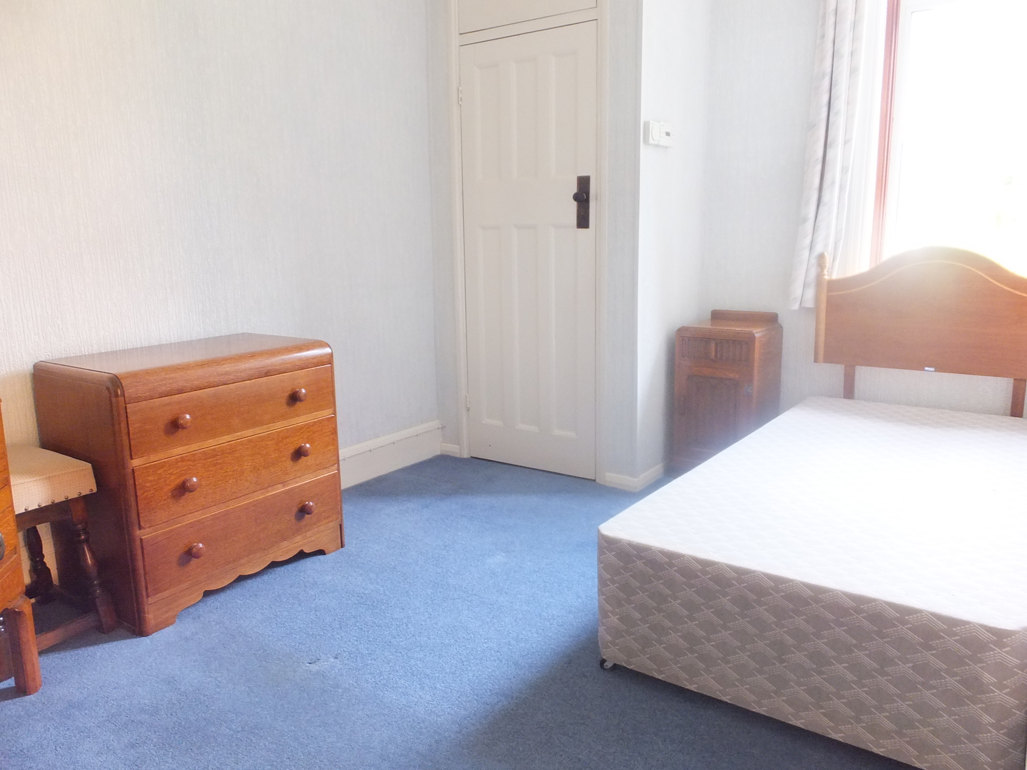 This is a third double bedroom with double glazed window to rear elevation overlooking garden. Carpeted, radiator power points and cupboard housing immersion tank.