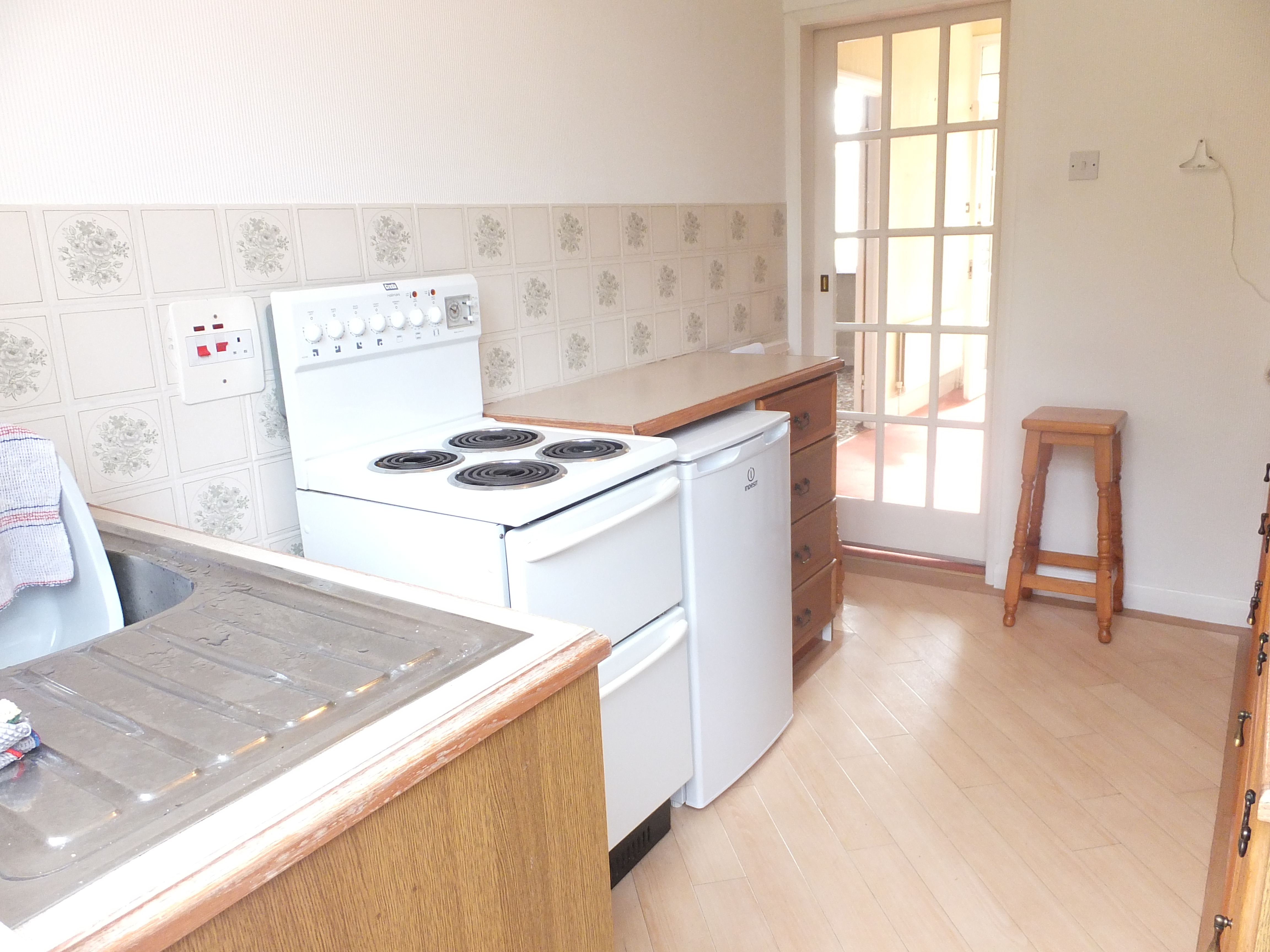 Just the right size for a working kitchen with fitted wall and base units with roll top work surfaces. Tiled splash backs and plumbing for all usual utilities, there is a double glazed window and double glazed door to well maintained rear garden.