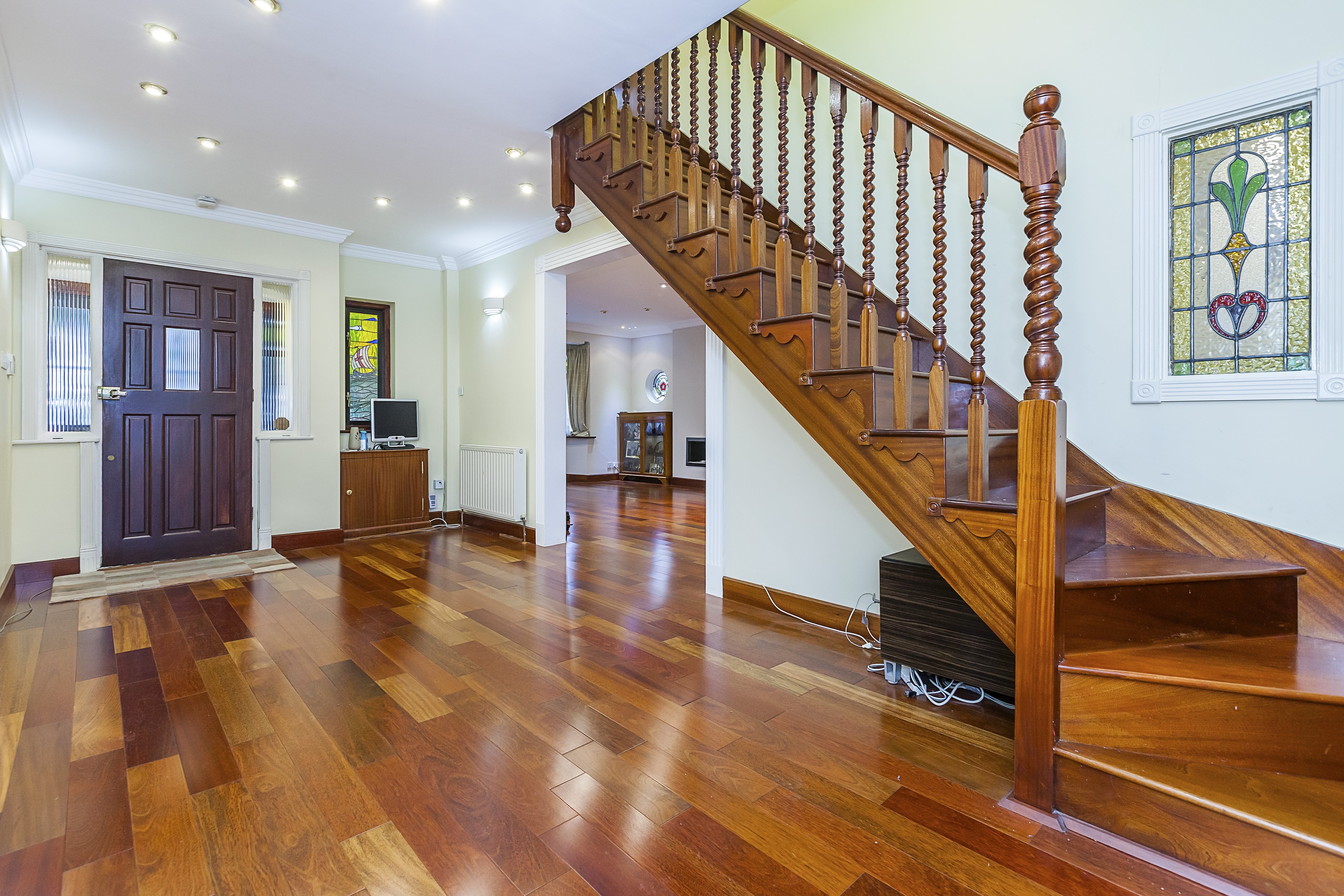 Entrance via double glazed door to storm porch and part glazed door opening to extremely spacious hallway opening further to dining area and two main reception rooms. Hard wood cherry timber flooring is a feature and runs through the hallway and into two of the reception rooms.