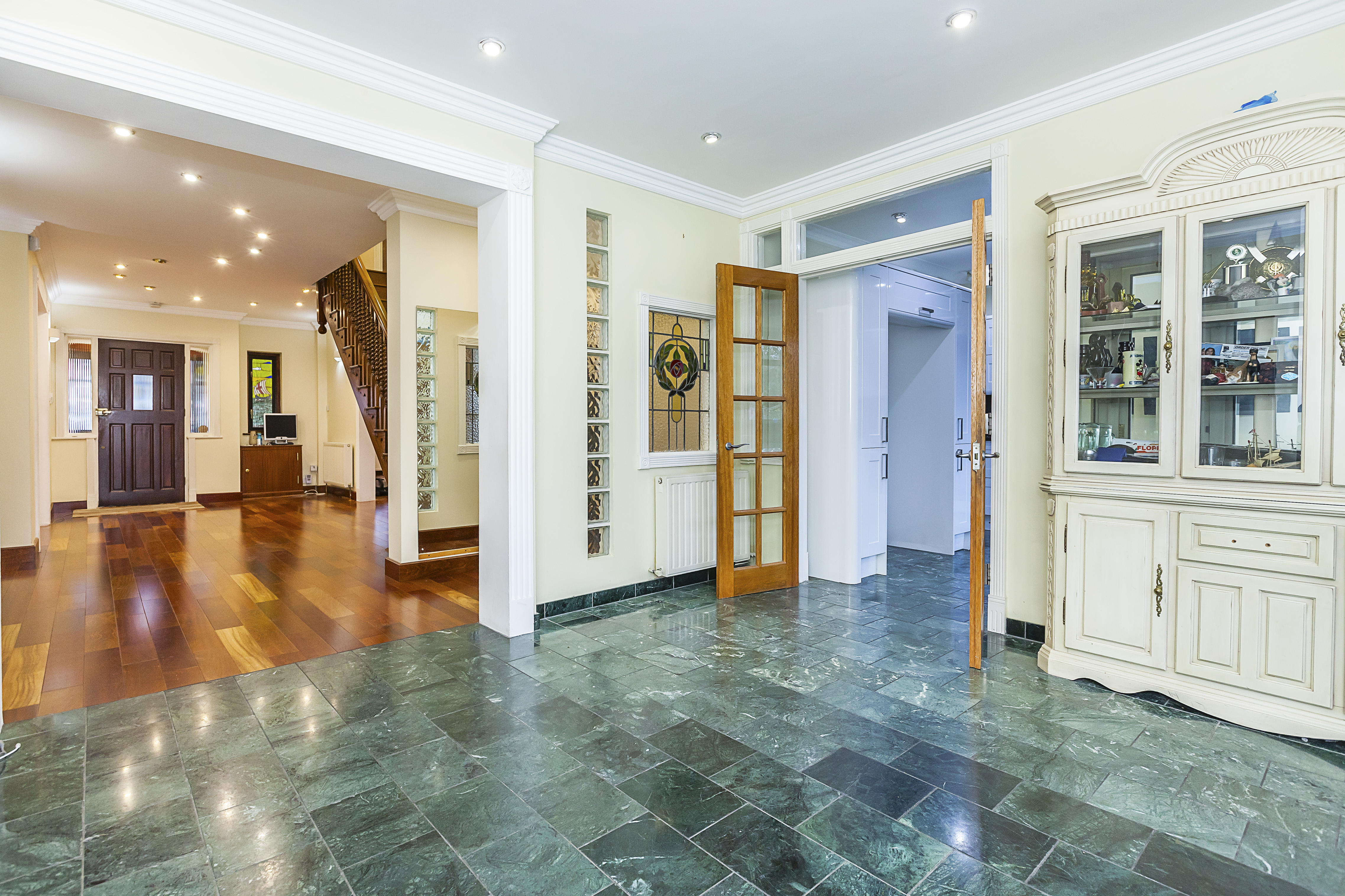 The kitchen is bespoke with wall and base units, quality fitted appliances are integrated and the polished granite work surfaces really do set off this kitchen off. The tiled flooring in the dining area simply compliments the entrance hall and together if needed seat 42 people for festive gatherings.