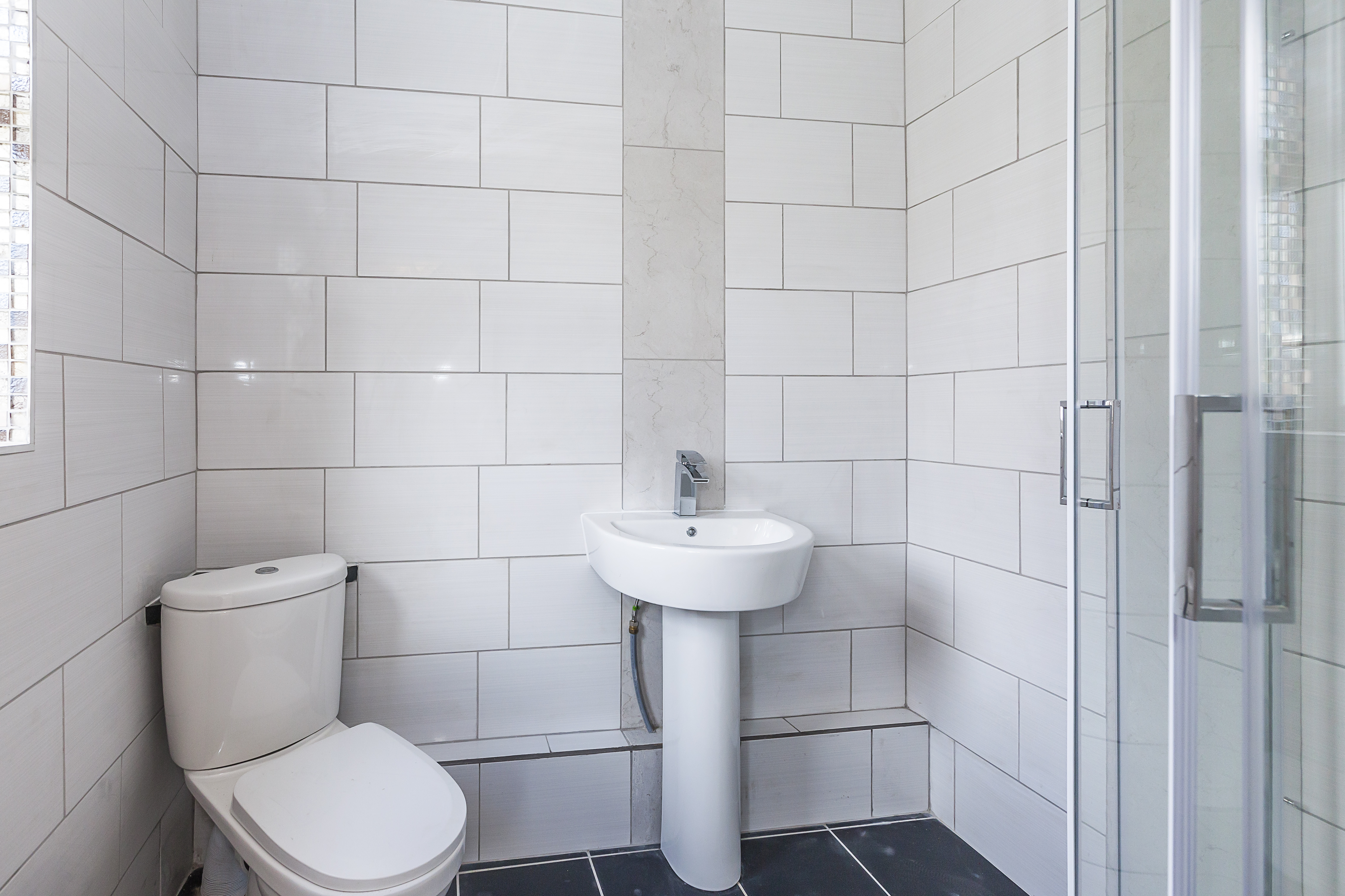 extractor fan, LED inset spot lights to ceiling, double glazed window to side flank wall.