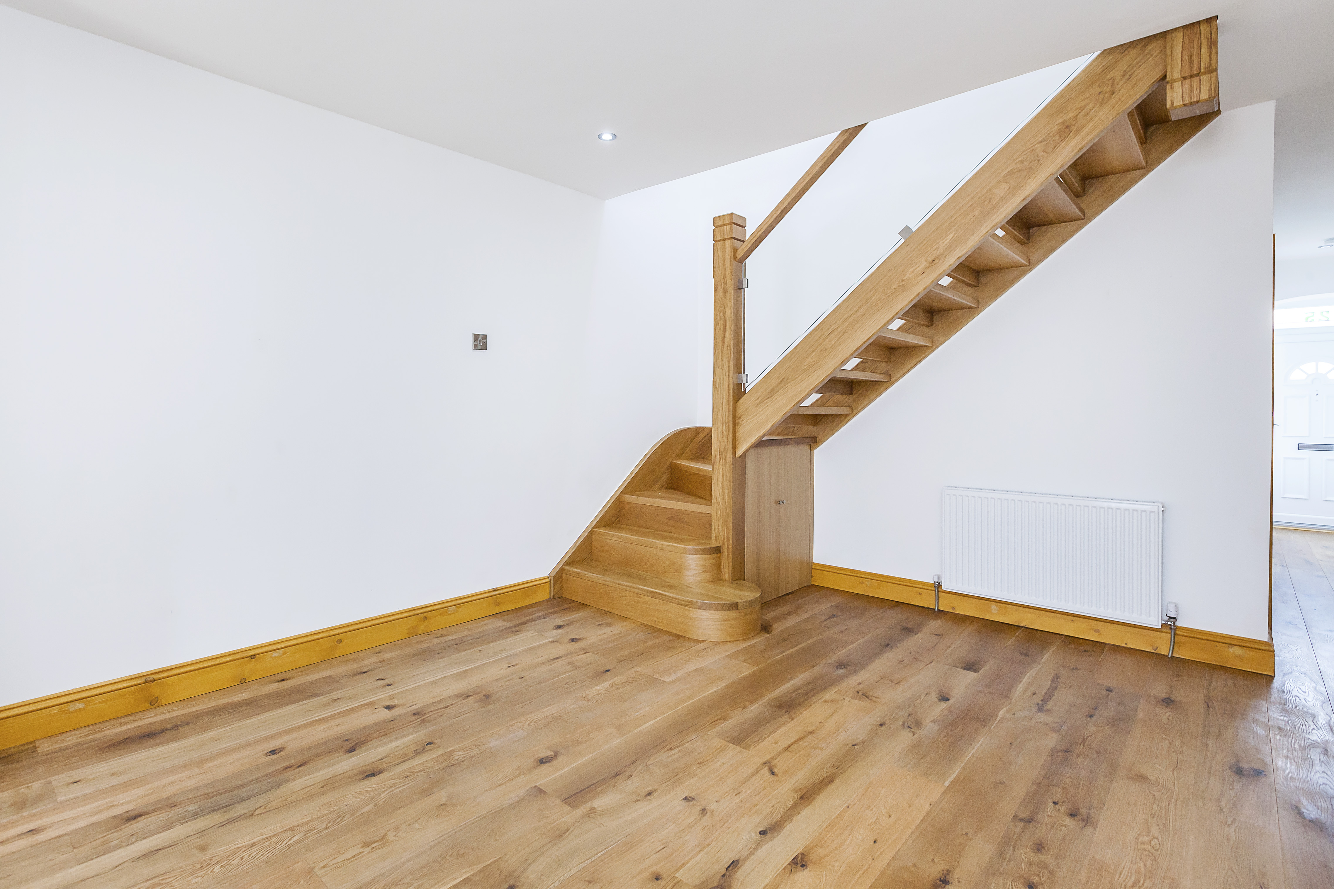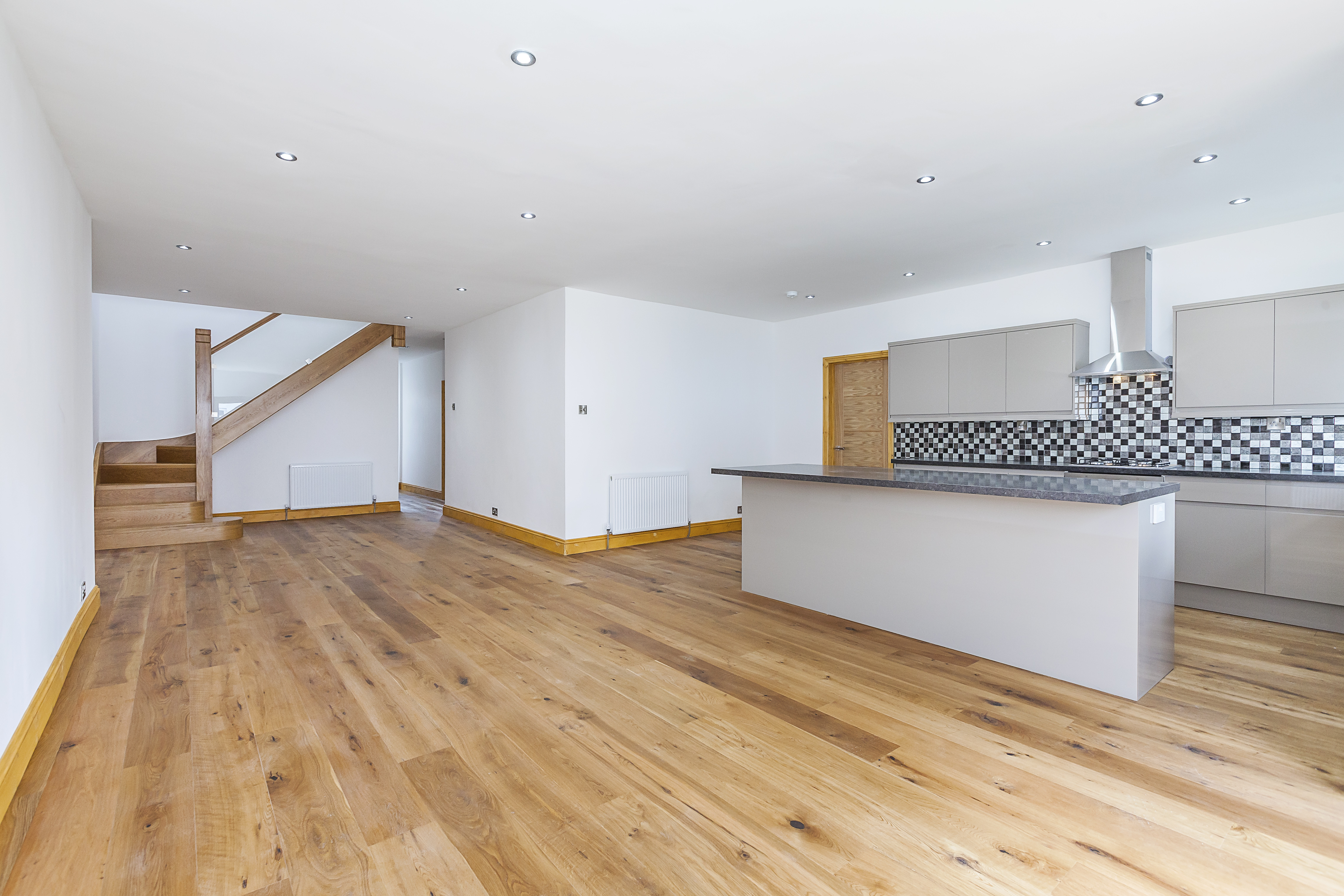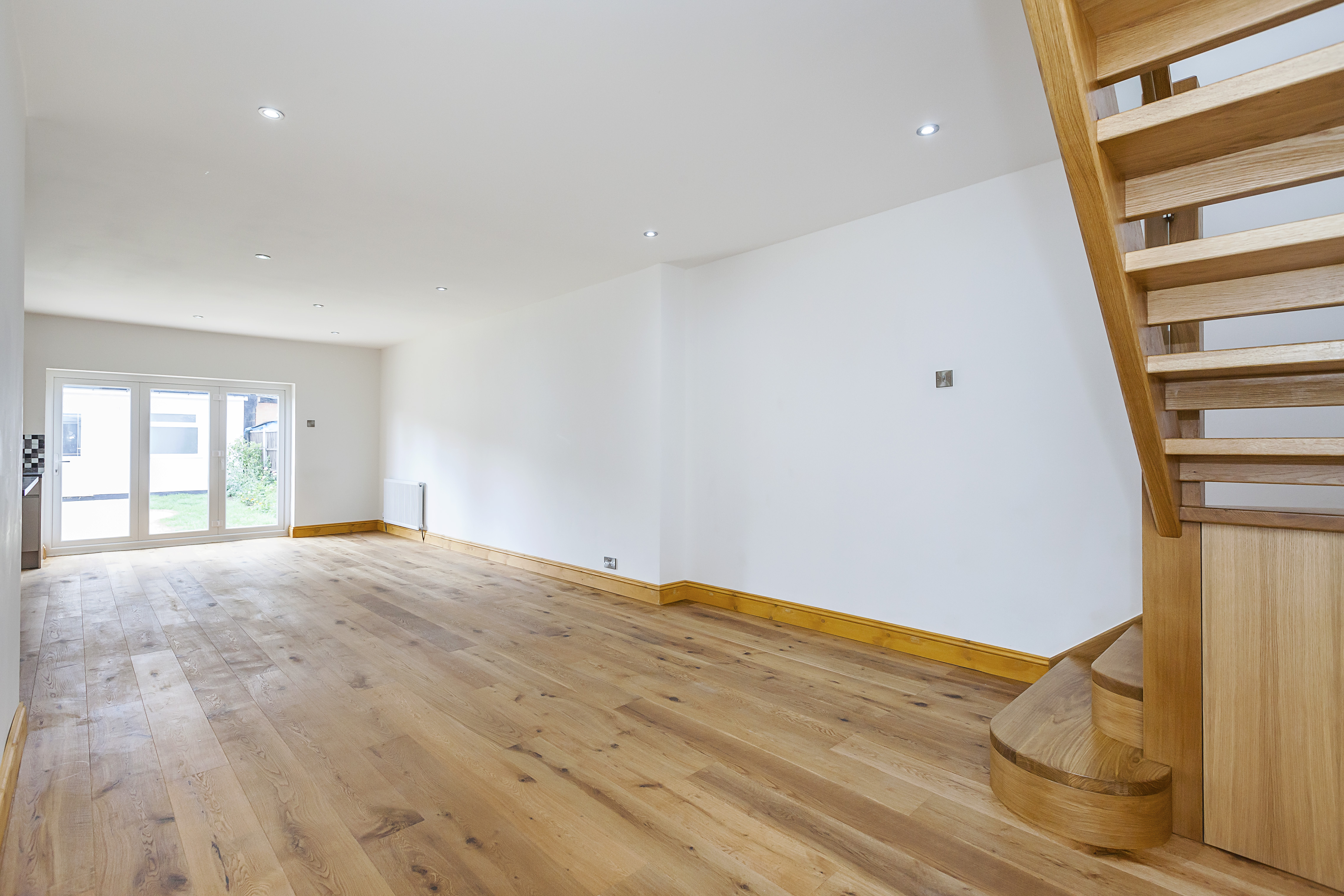 Lounge Area – Engineered country oak wood flooring, radiator x 2, LED inset spot lights to ceiling, double glazed patio doors leading to private rear garden and brick built outhouse