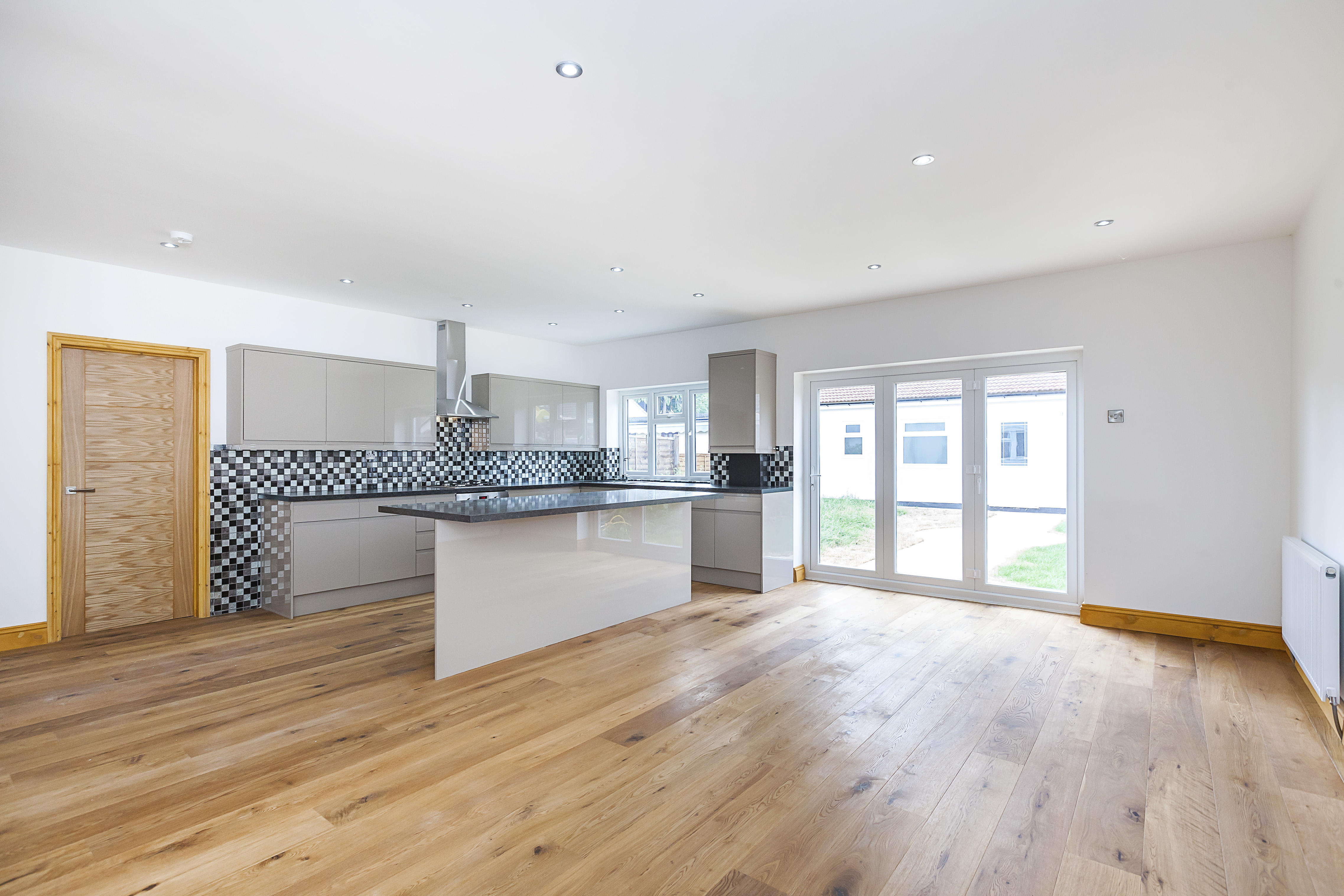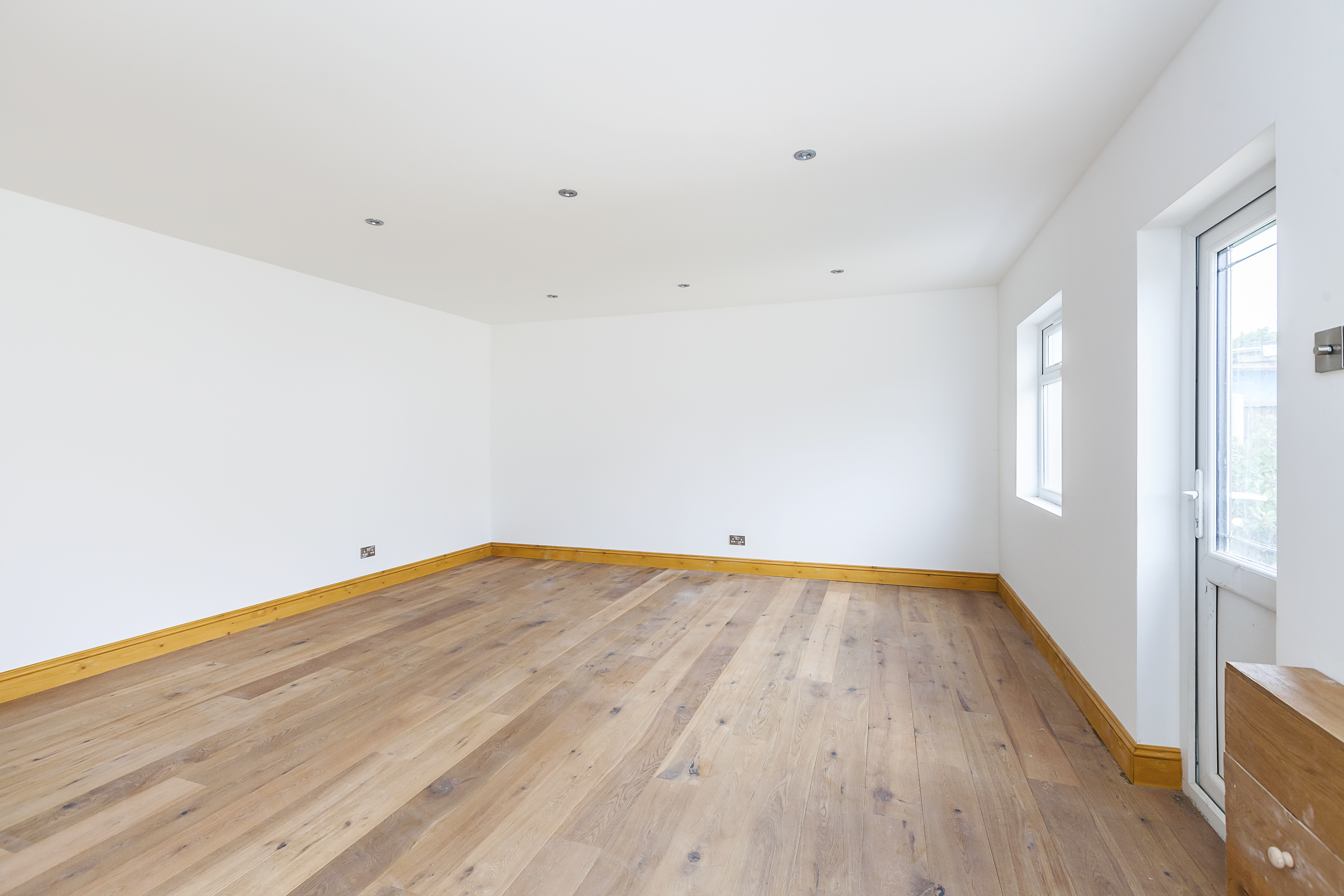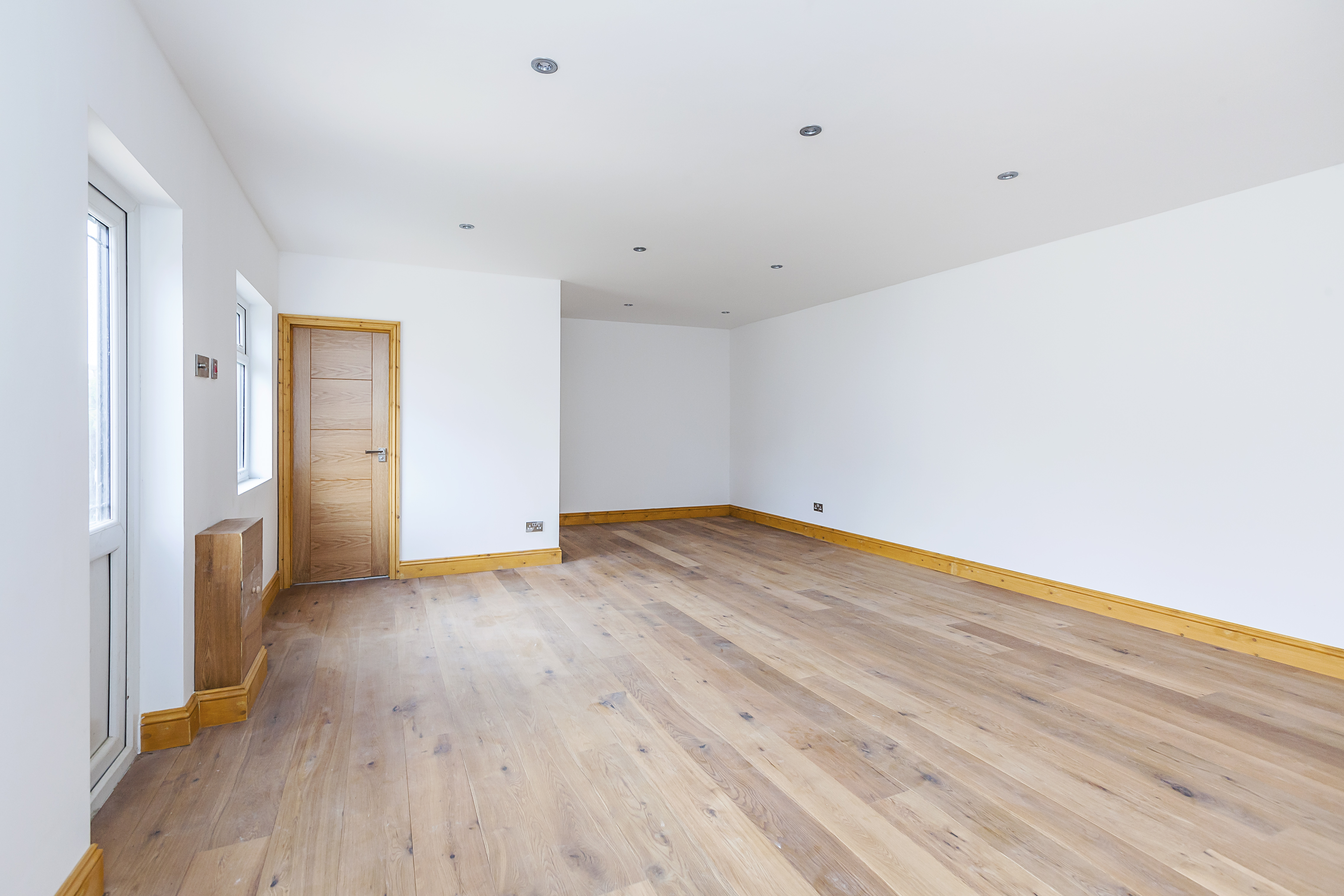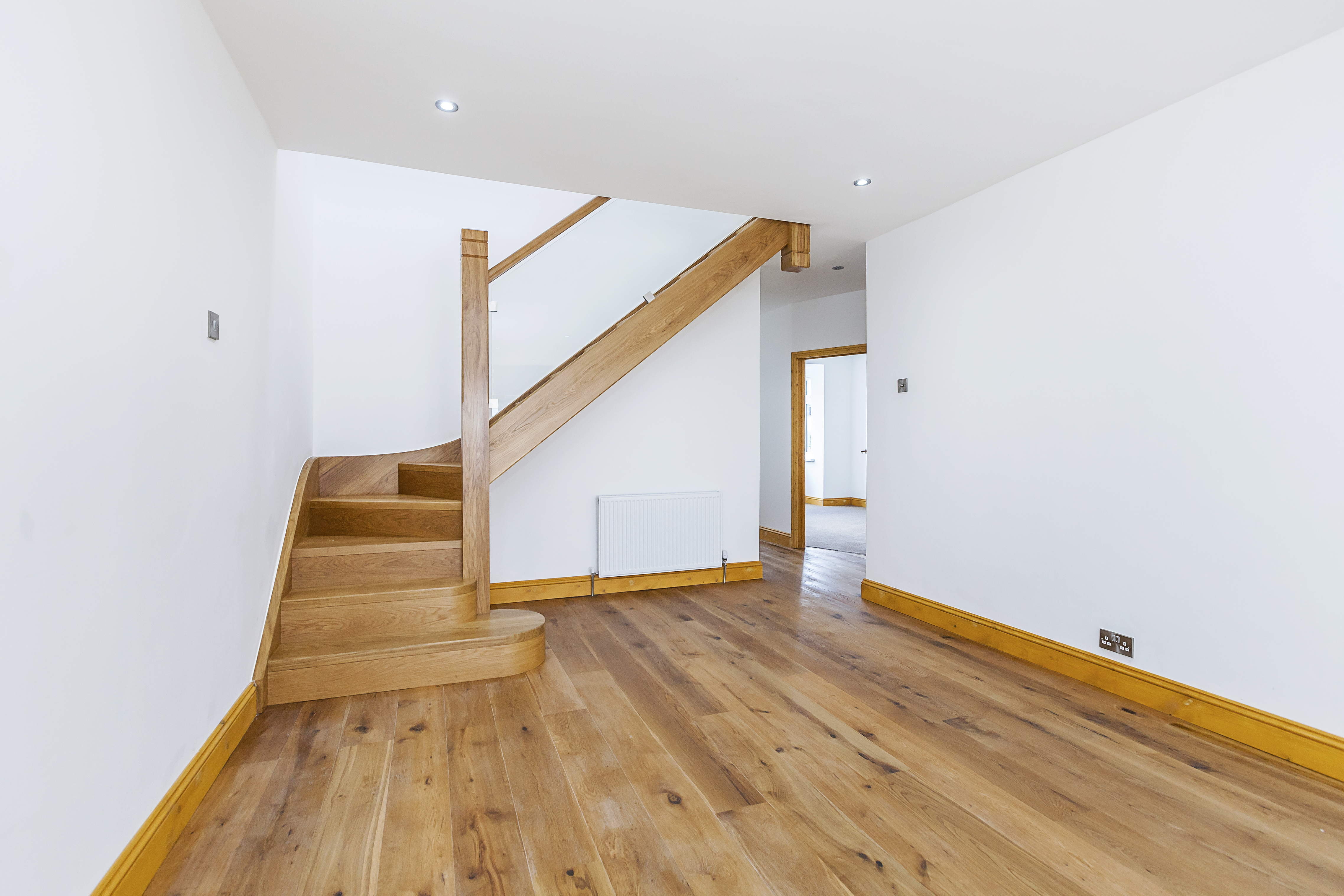 Lounge Area – Engineered country oak wood flooring, radiator x 2, LED inset spot lights to ceiling, double glazed patio doors leading to private rear garden and brick built outhouse