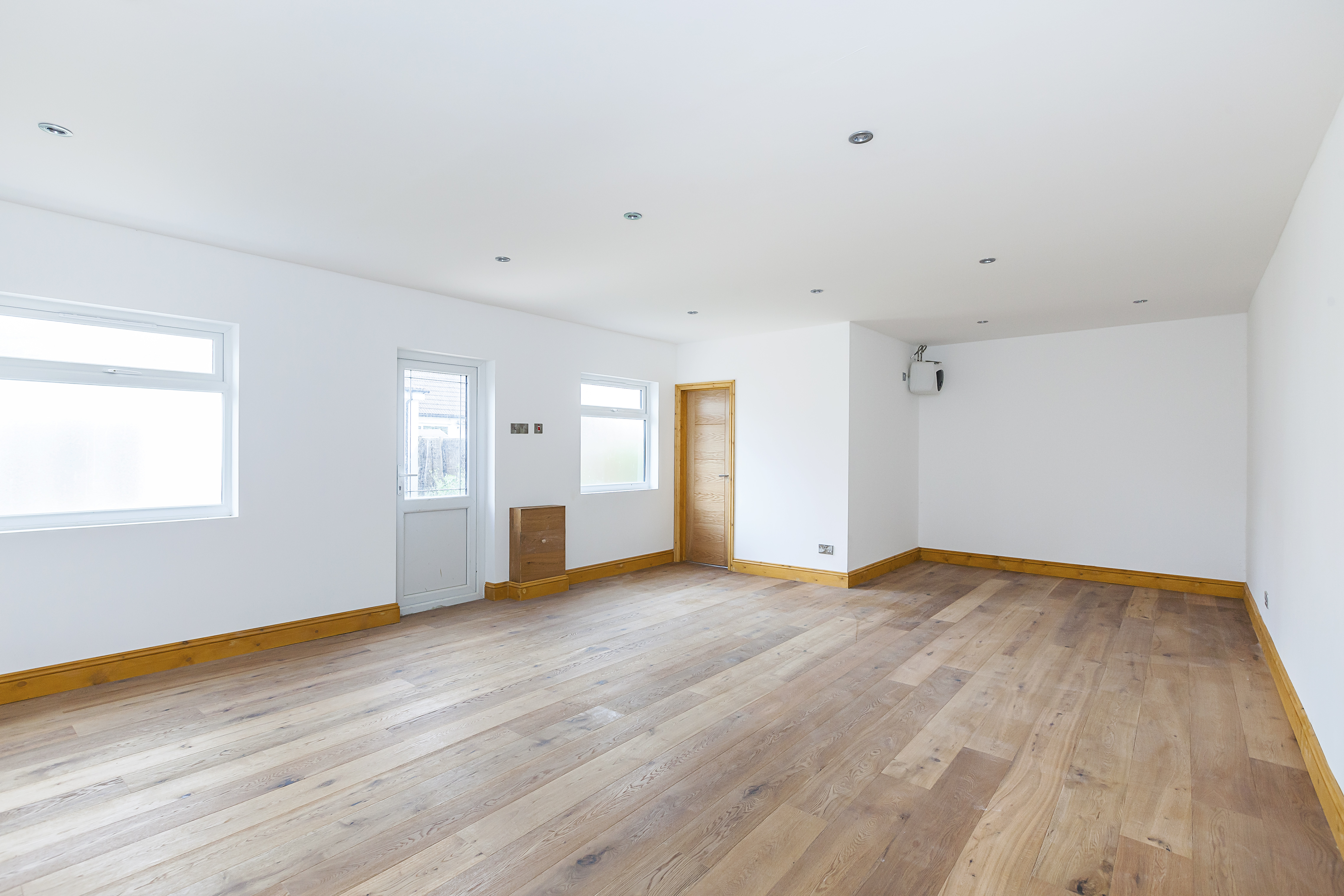 Brick built Outhouse: 26’6″ x 16’5″ – Engineered wood flooring, LED inset spot lights to ceiling, door leading to: