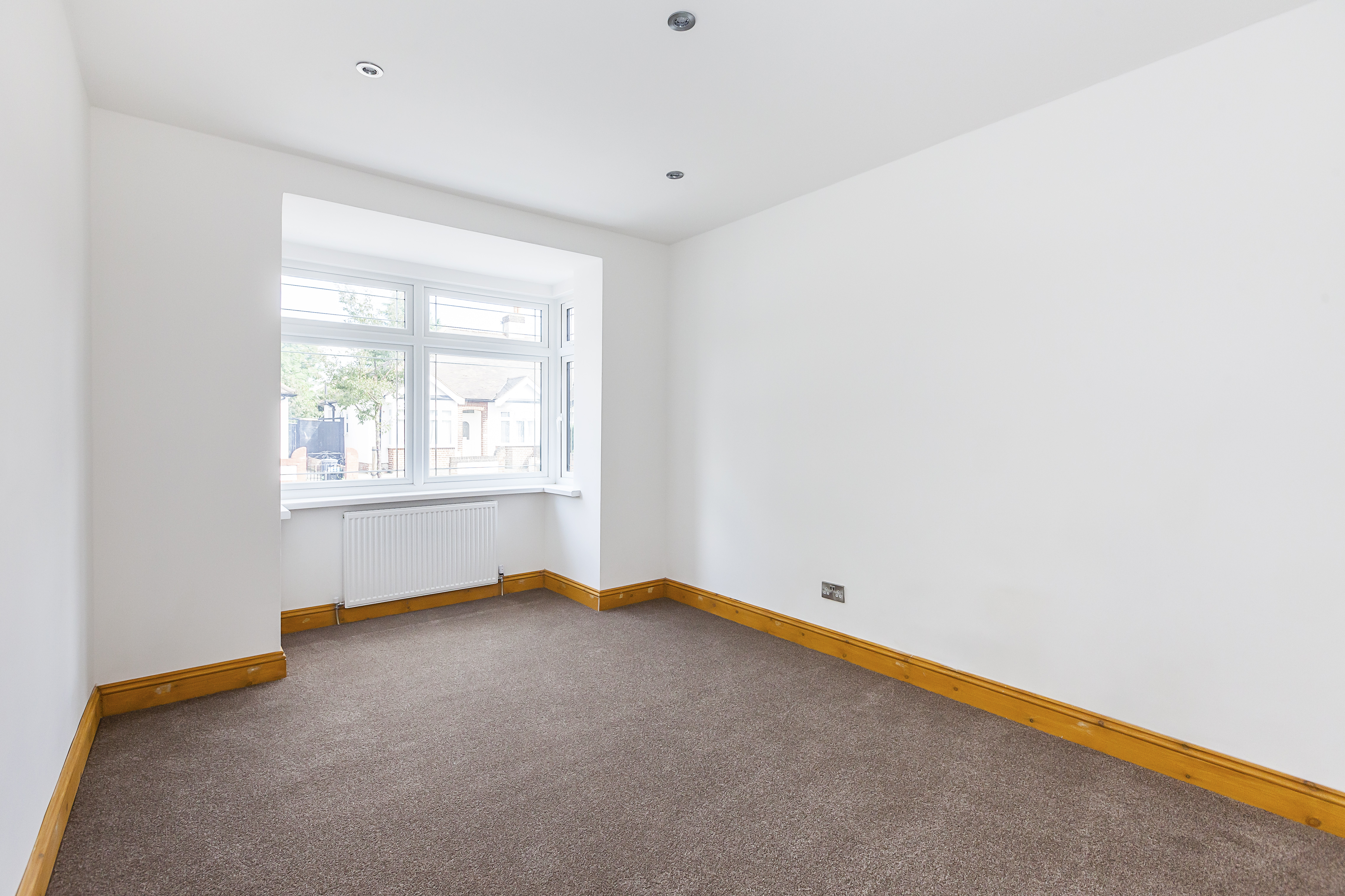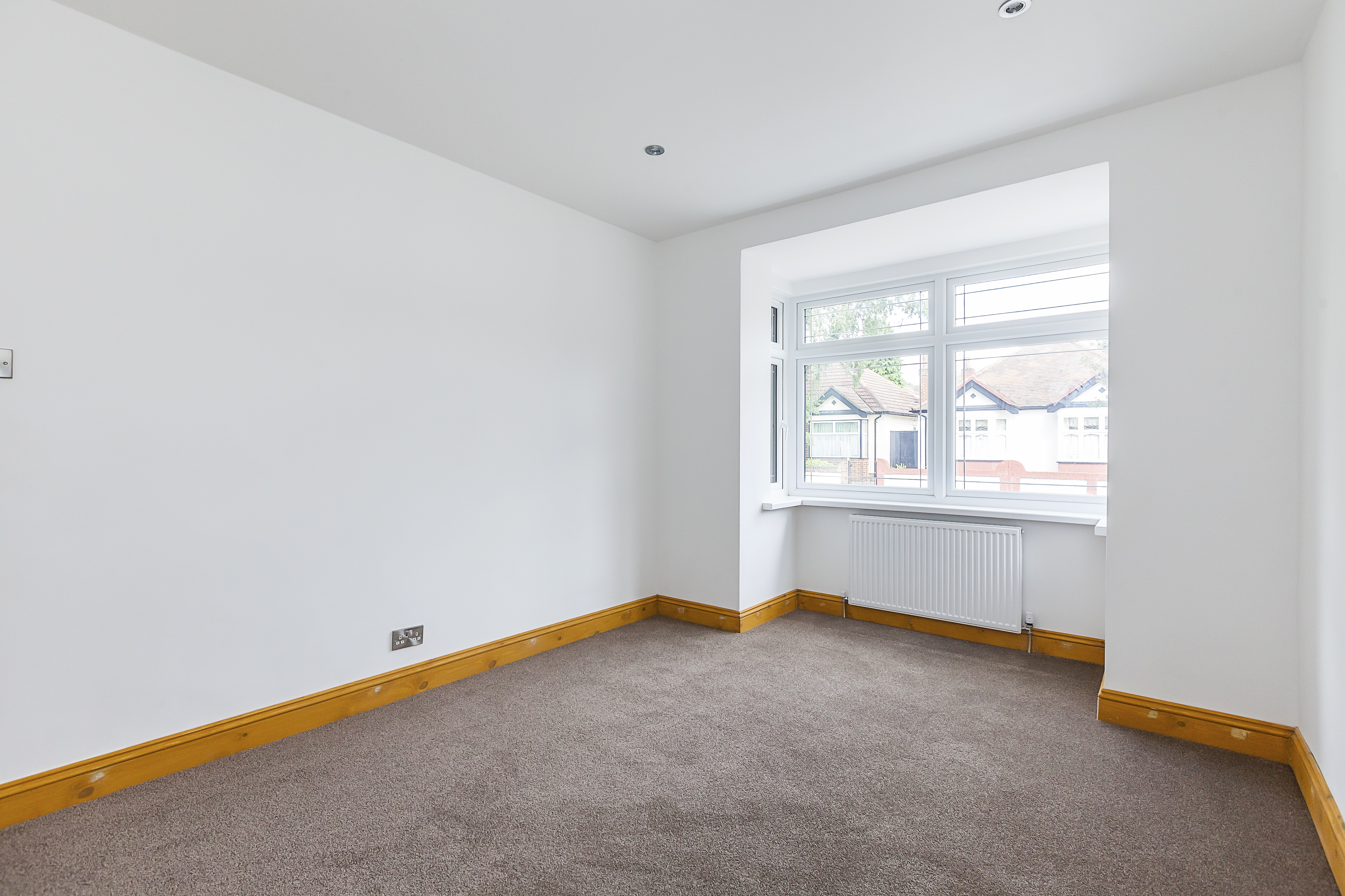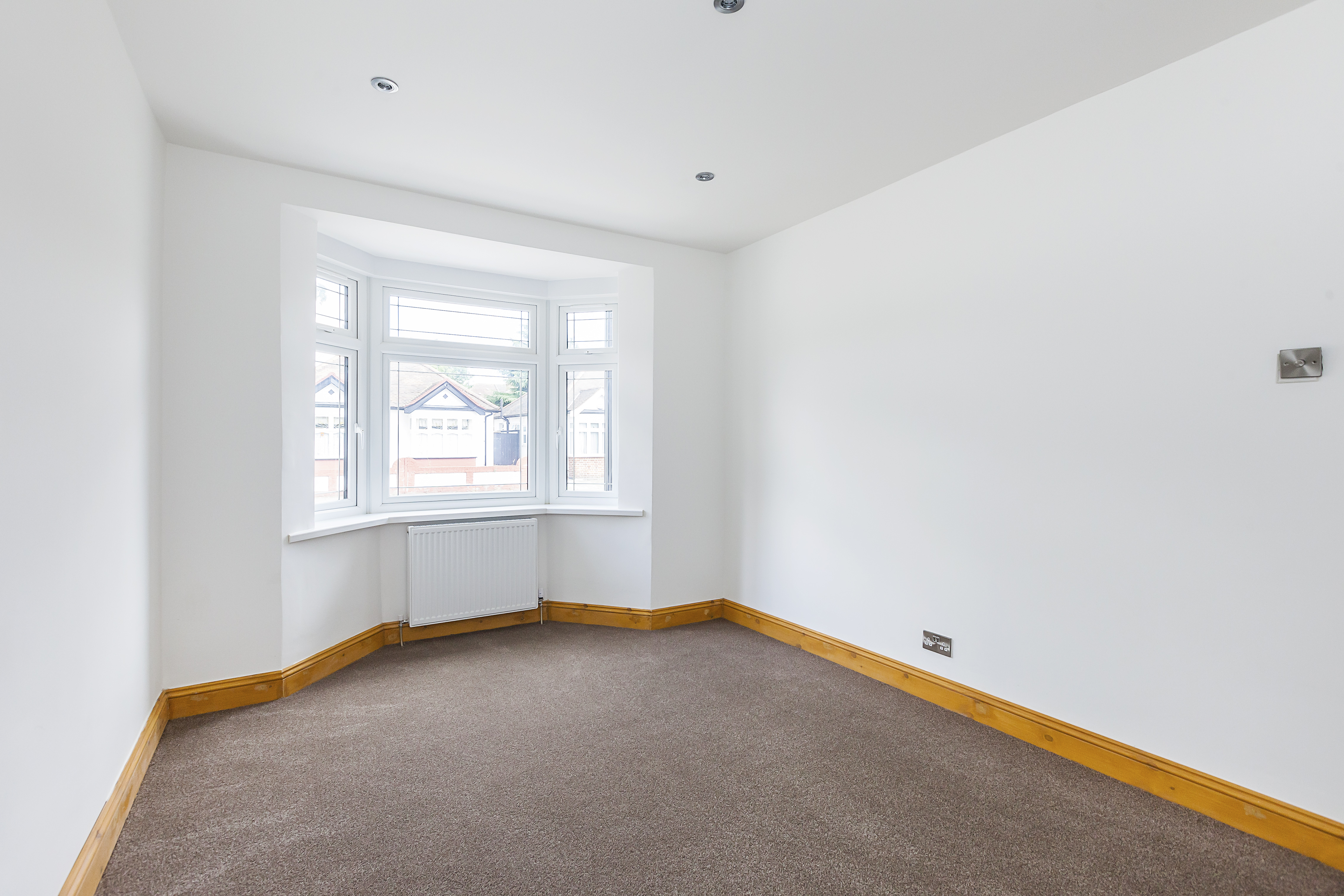 Bedroom Two – 15’9″ x 10’4″ – Double glazed bay window to front aspect, fitted carpet, radiator, LED inset spot lights to ceiling