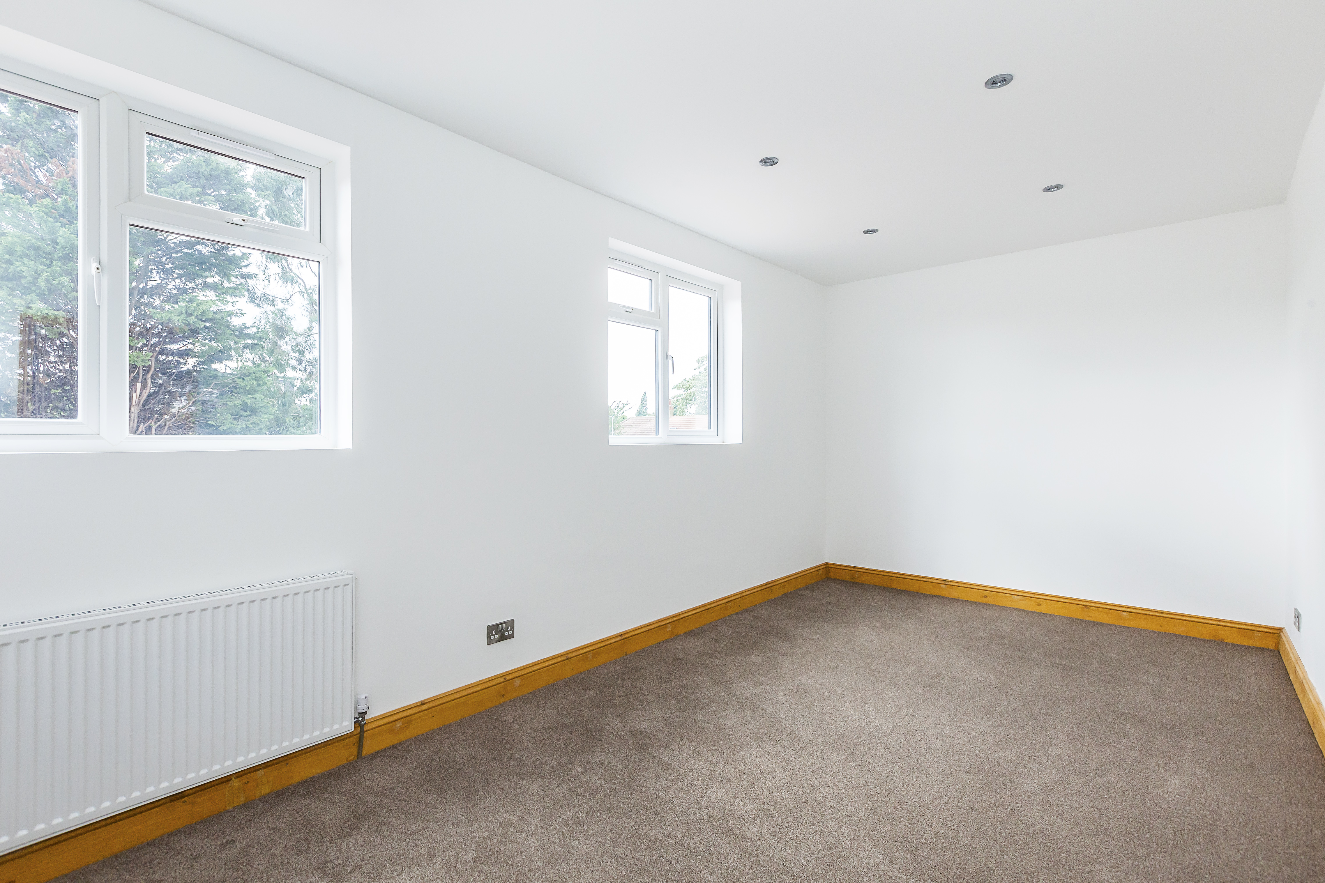 Bedroom Three -13’9″ x 12’3″ – Double glazed window to side aspect, fitted carpet, radiator, LED inset spot lights to ceiling