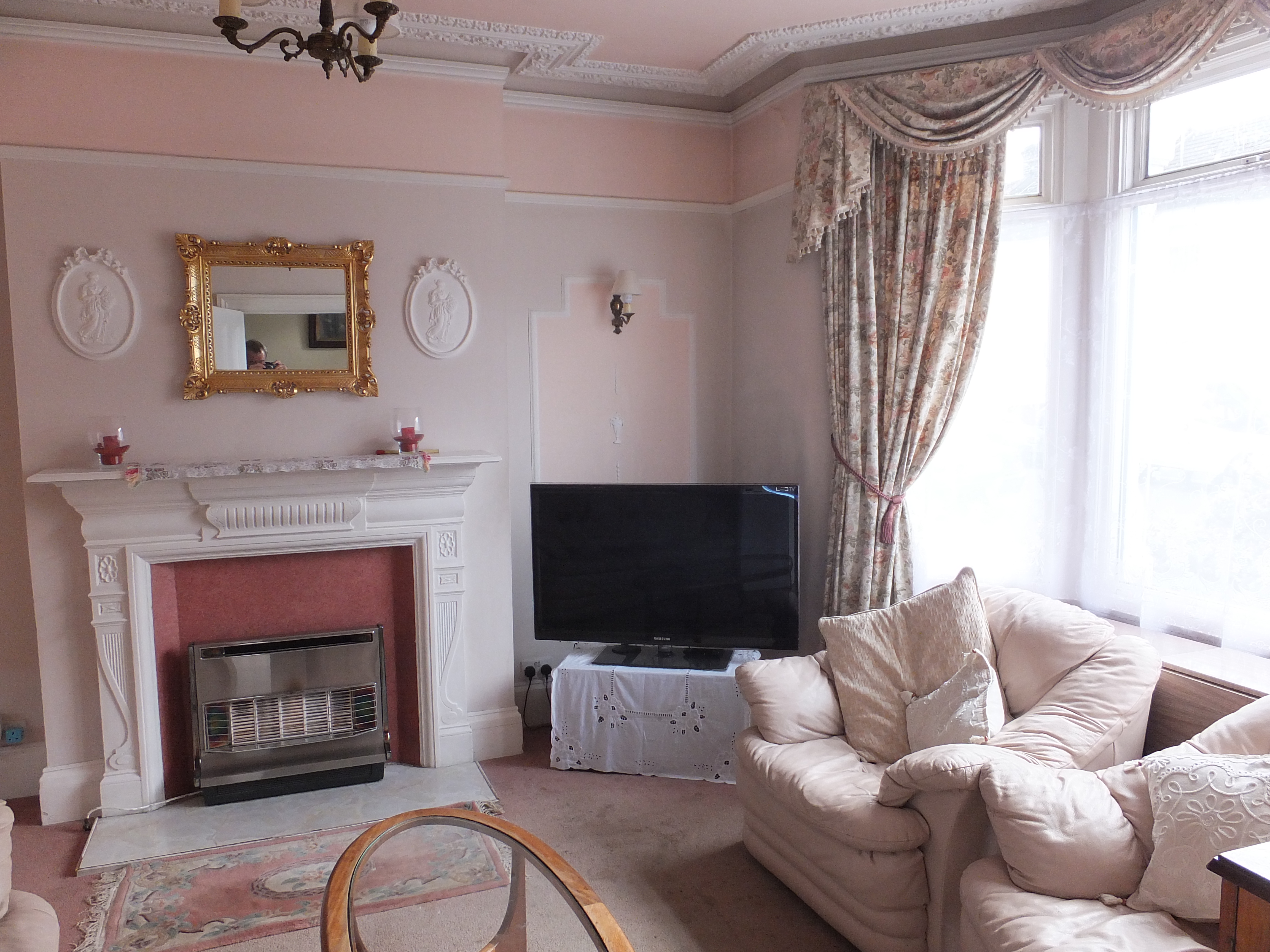 Reception One: 15’11” x 13’3″ Bay to front elevation, featured fire surround, original molding to ceiling also featured center rose. Picture rail, carpeted and power points.