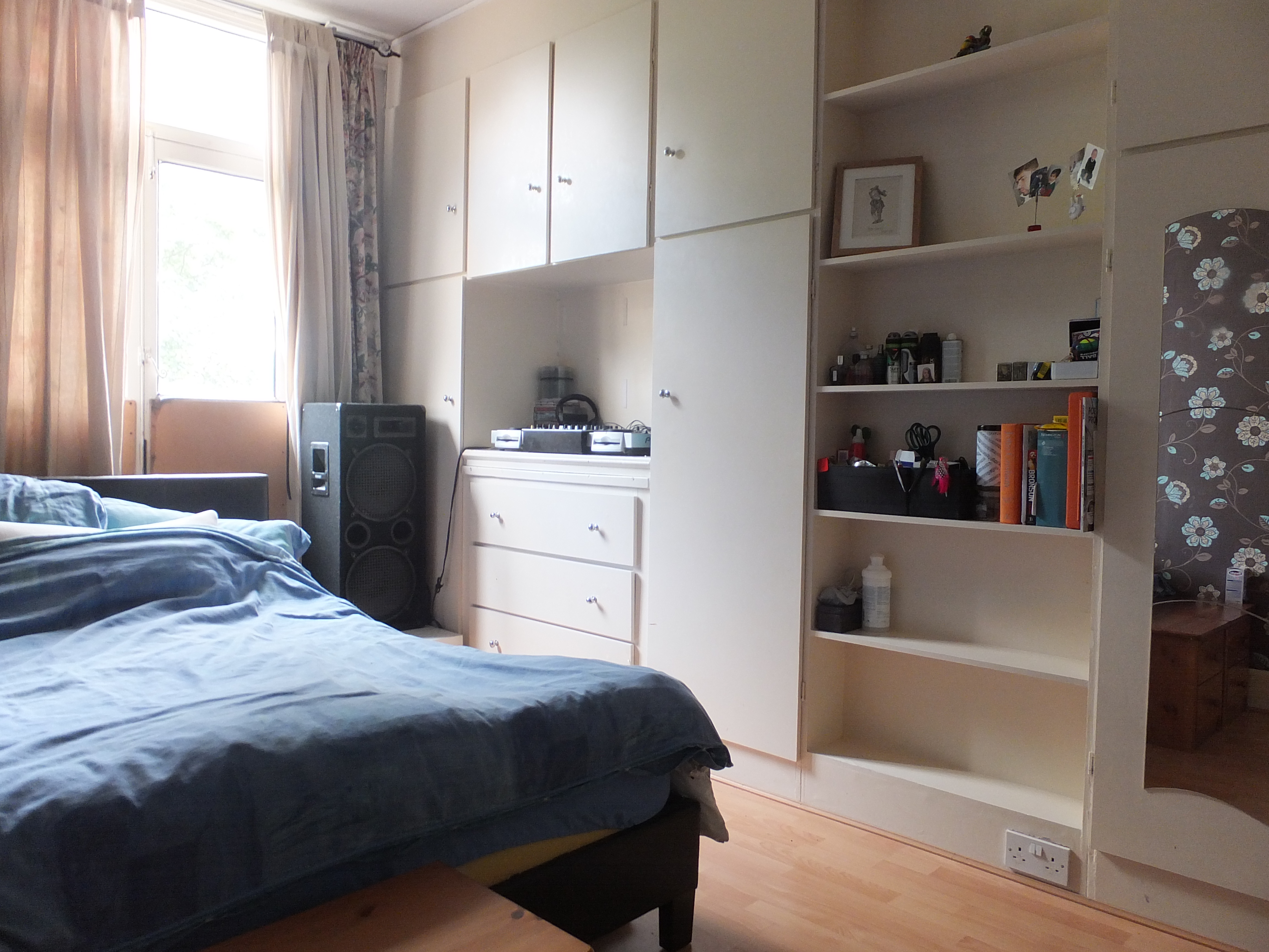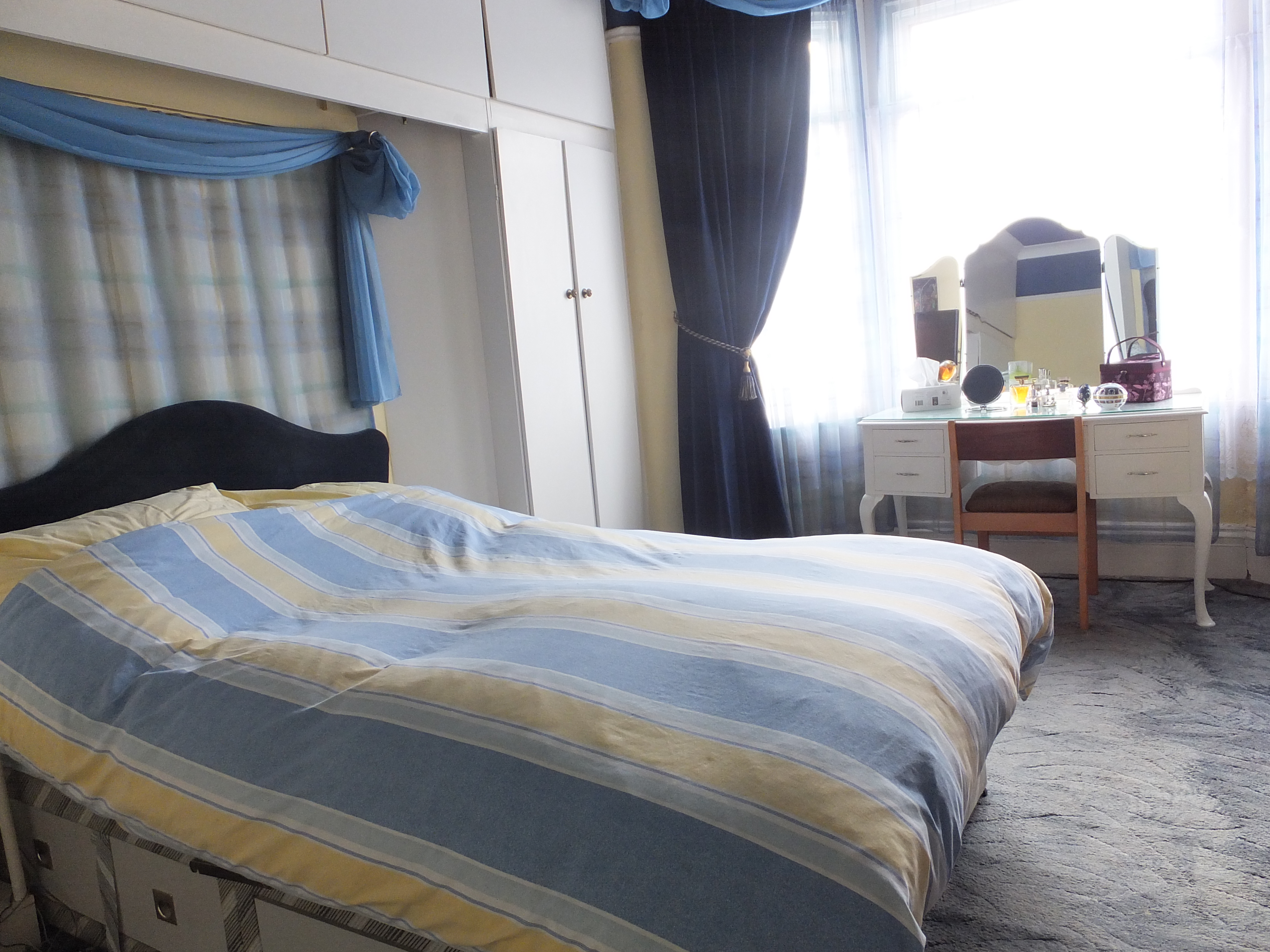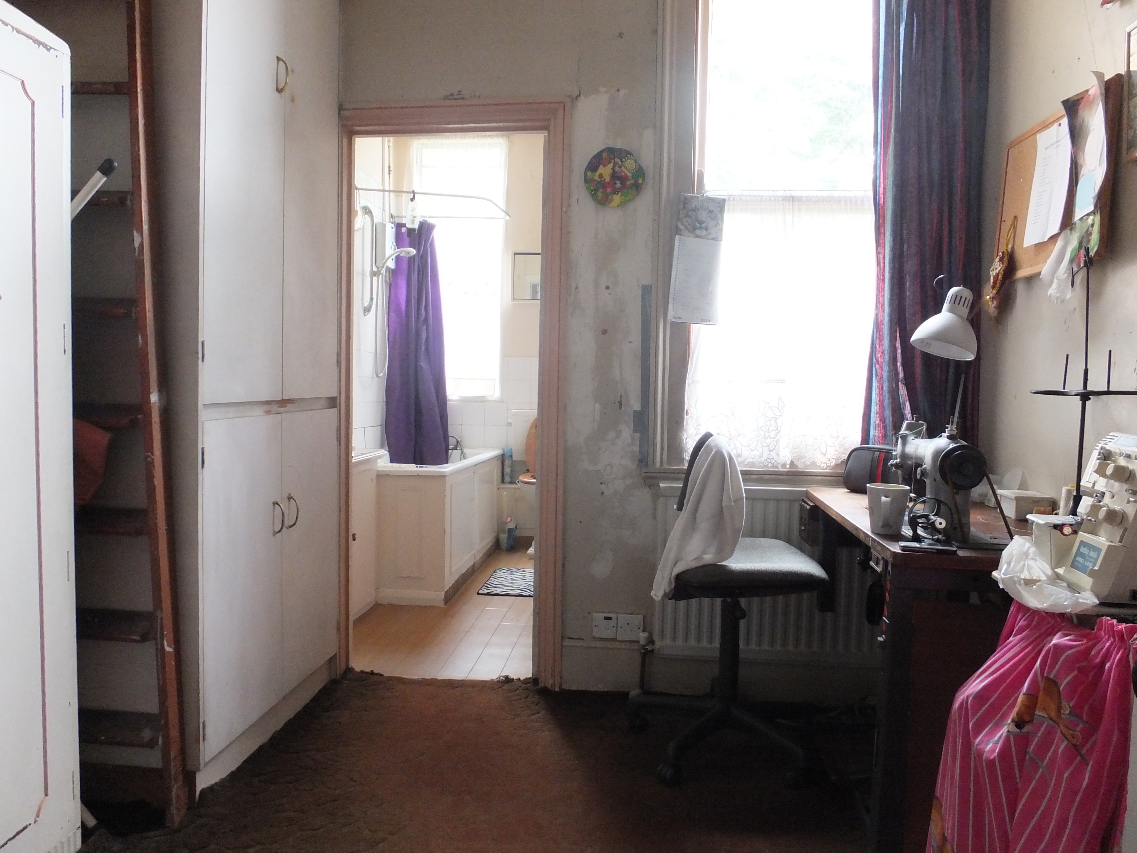 Bedroom Three: 9’6″ x 9’3″ Sliding sash window to rear aspect. Large cupboard, Carpeted, single radiator and power points.