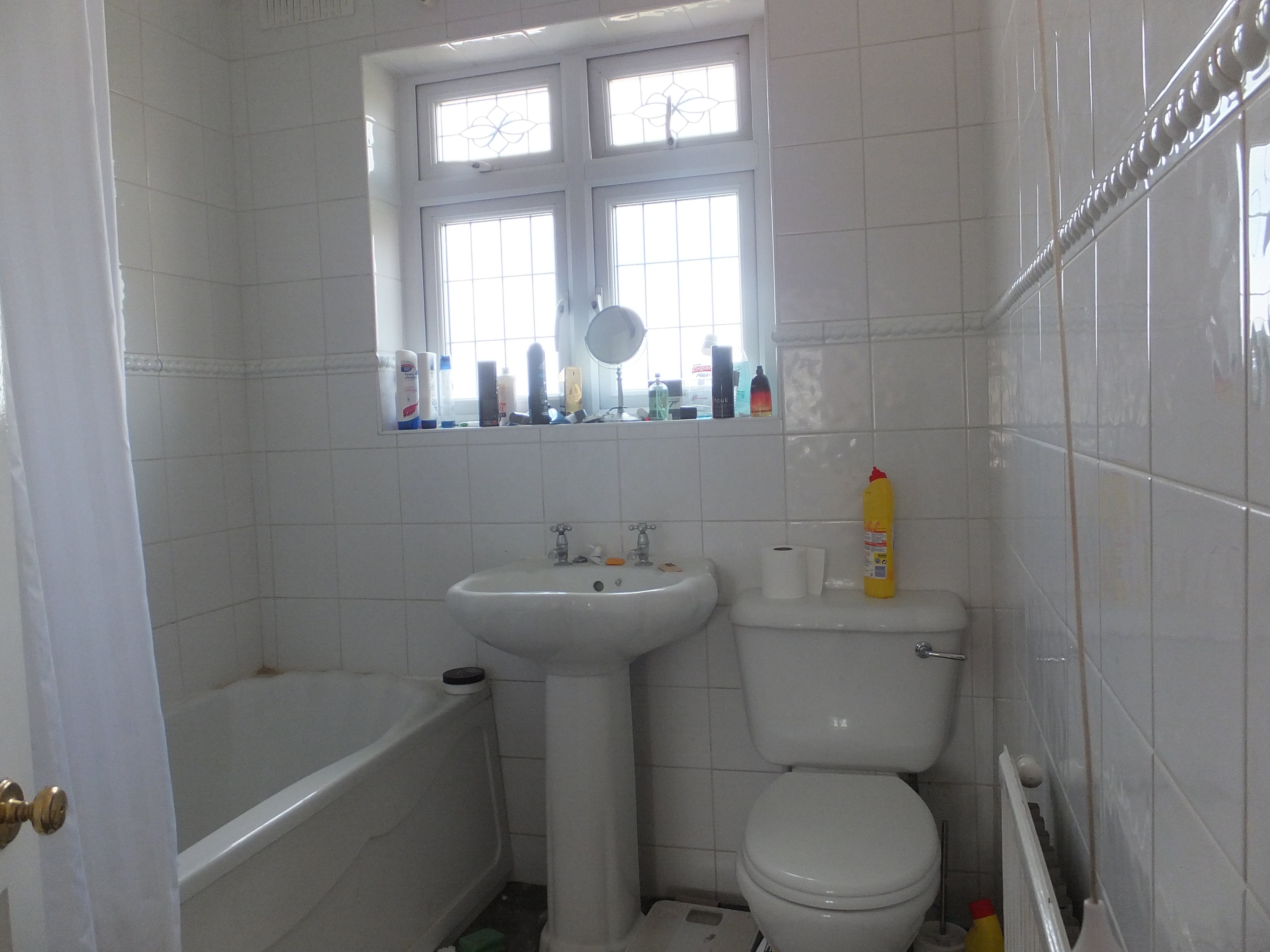 Bathroom: Fitted three piece suite with panel bath and shower over, wash hand basin and low level w.c double glazed window to rear.