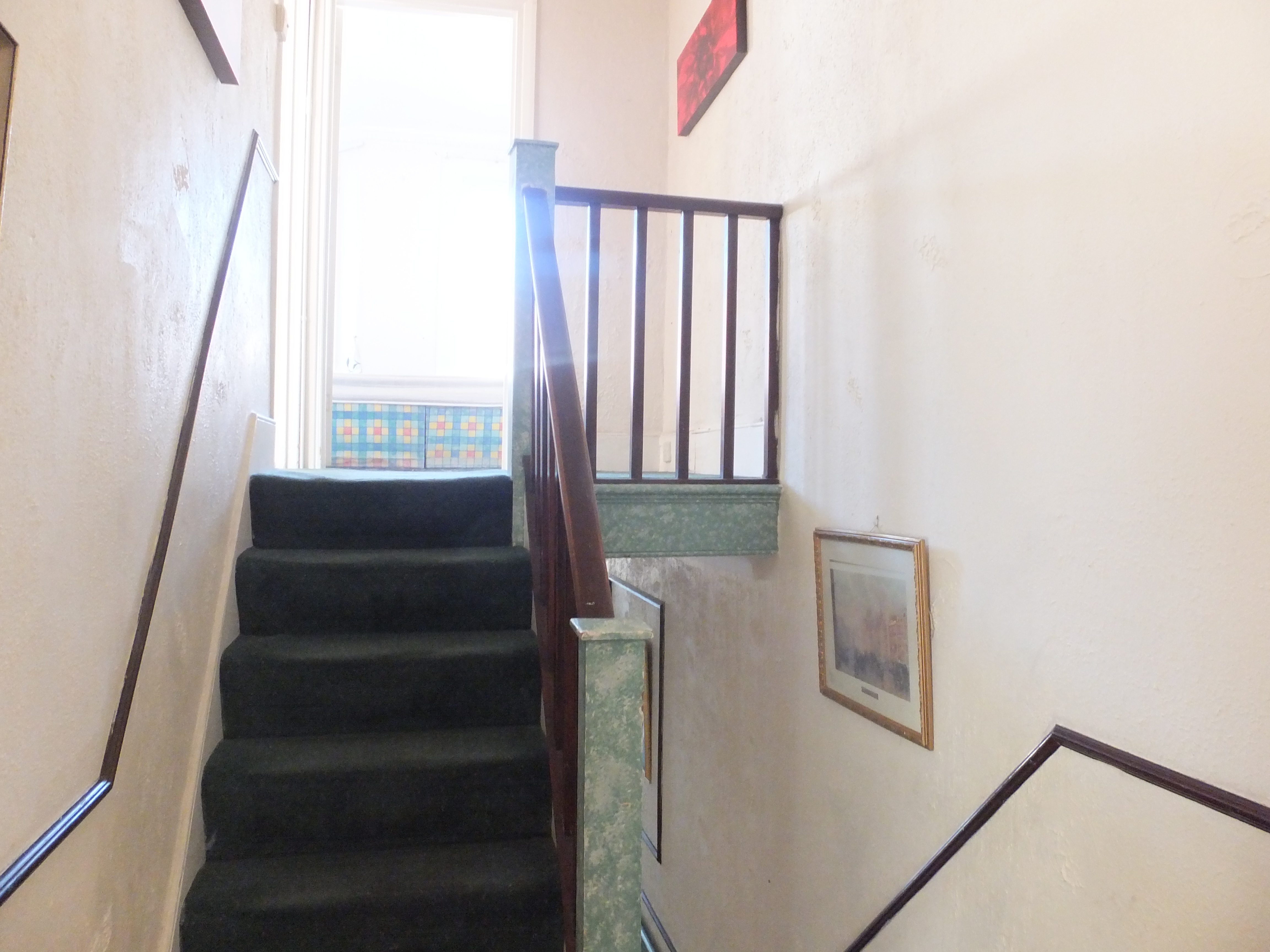 Stairs down to lower hall with access to large dry cellar housing boiler and excellent storage, plus additional storage housing meters.