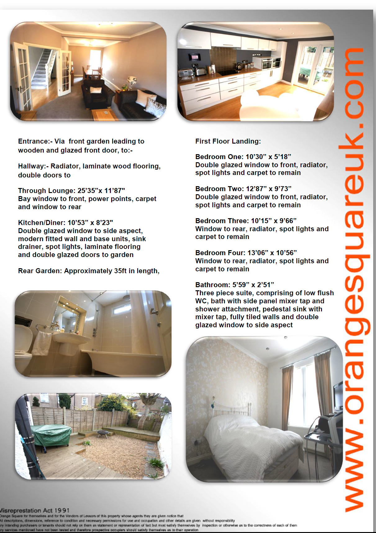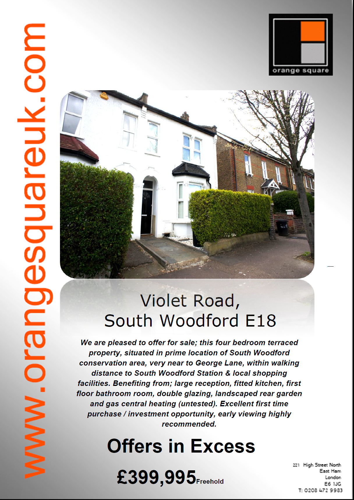 Orange Square are pleased to offer for sale; this four bedroom terraced property, situated in prime location of South Woodford conservation area, very near to George Lane, within walking distance to South Woodford Station & local shopping facilities. Benefiting from; large reception, fitted kitchen, first floor bathroom room, double glazing, landscaped rear garden and gas central heating (untested).